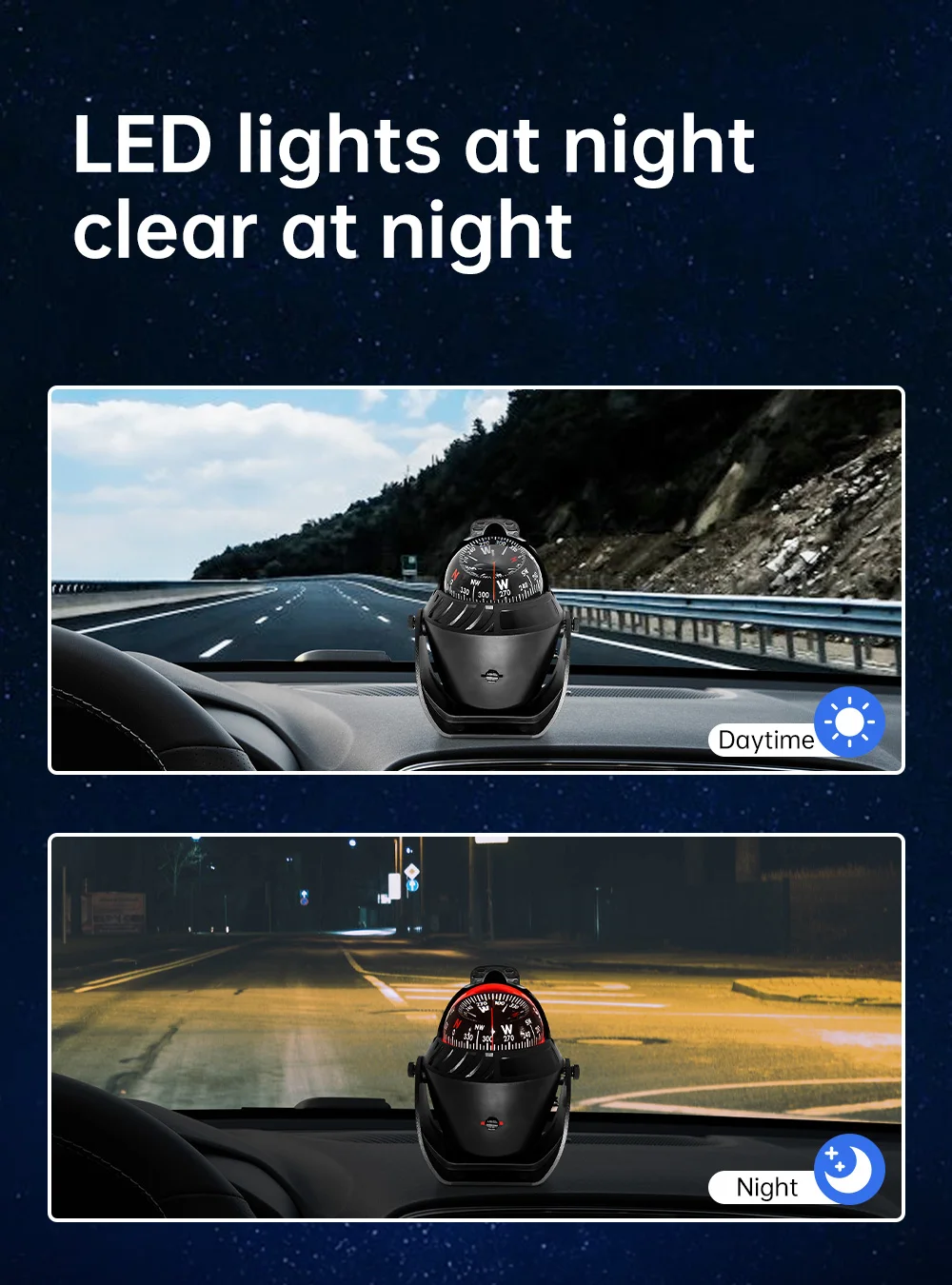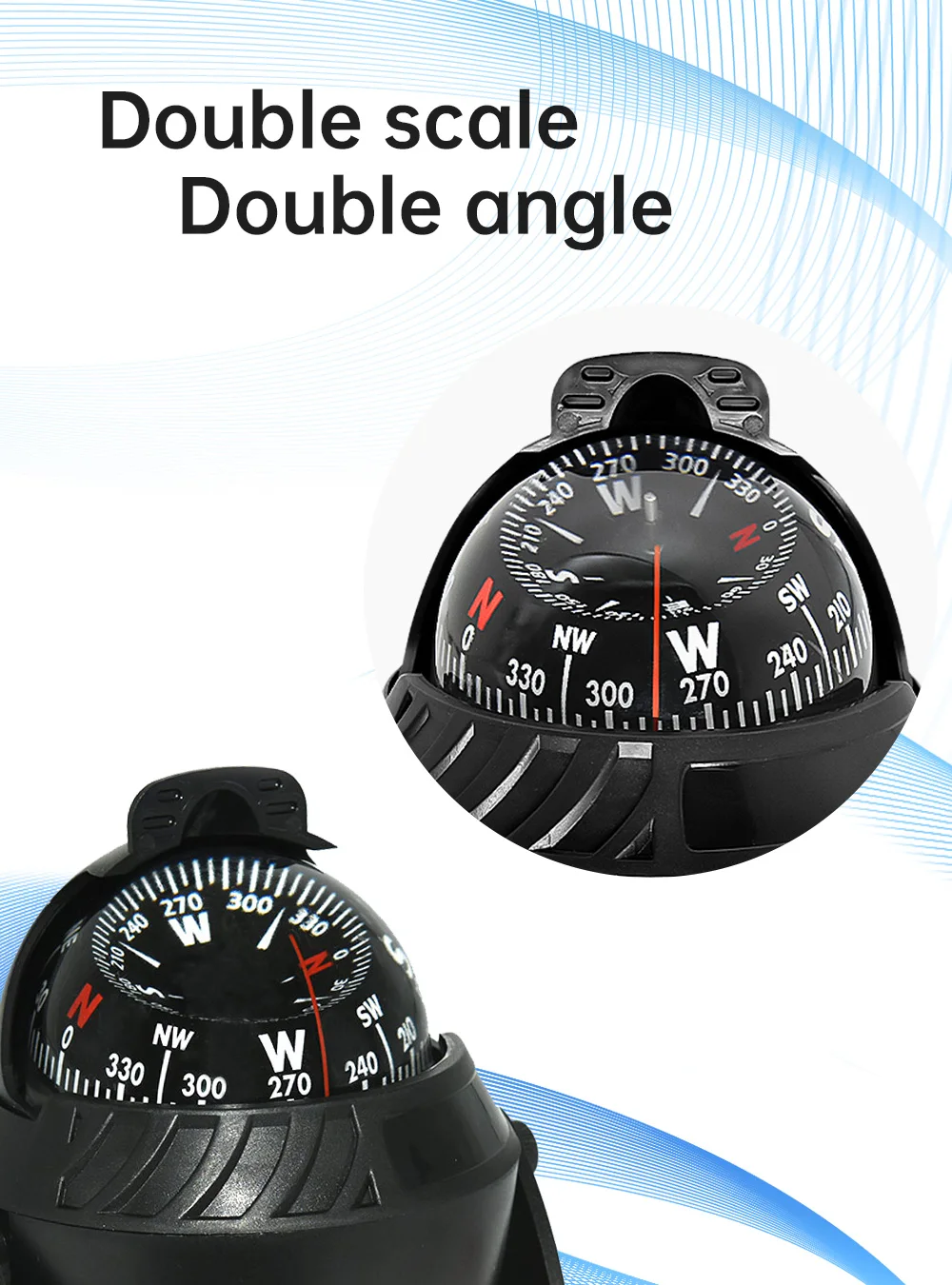 - Multi-function Compass, Magnetic Declination adjustment, 12V LED lights for night