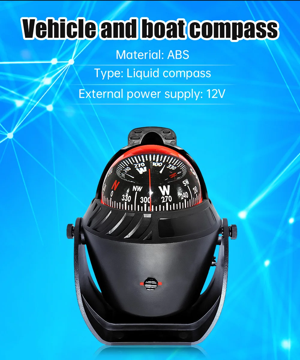 Marine Navigation Compass Black With Electronic LED Light Electronic Sea Pivoting Marine Compass For Marine Boat 12V