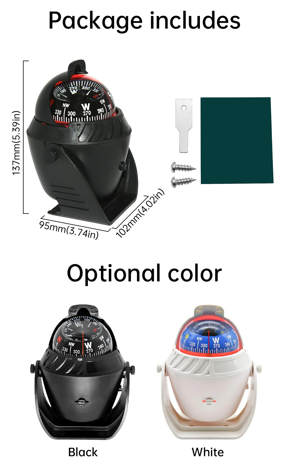 - Compass with Mounting screw slot , 5 degree graduations