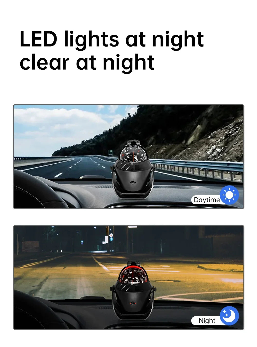- LED illuminated pivoting compass